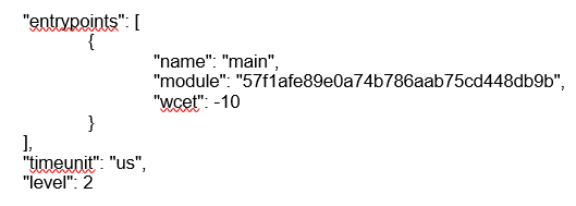 • wcet is the Worst Case Execution Time of the entry points (this value is negative if it has not been calculated).