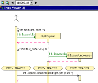 When the Split Trace capability is enabled, the UML/SD Viewer displays the list of TDF files generated in the UML/SD Viewer toolbar.