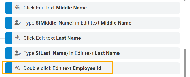 User interface changes in an application can alter the behavior of recorded test steps. For example, after a UI update, the Employee ID field might require a double-click instead of a single click to enable editing. As a result, a previously recorded Click action might no longer work as expected.