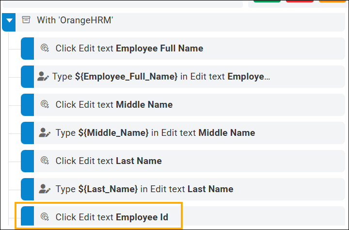 In the recorded test steps list, locate the Click Edit text Employee