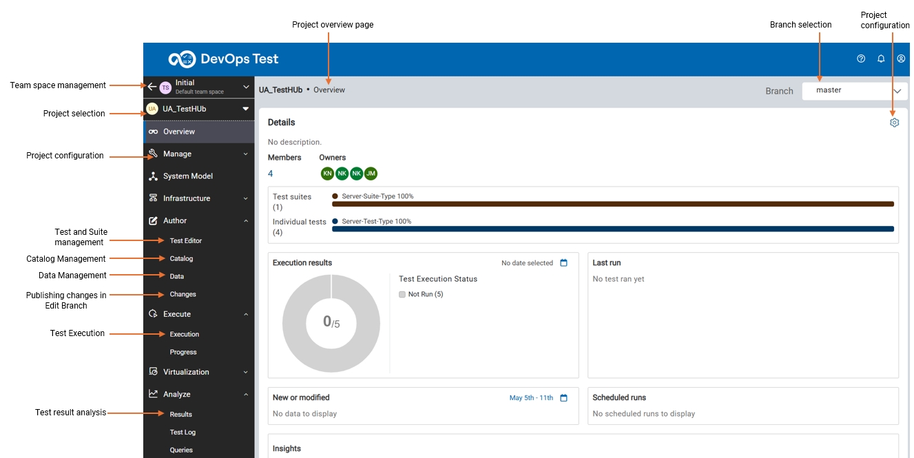 You can manage and monitor all testing activities in one place on the project Overview page.