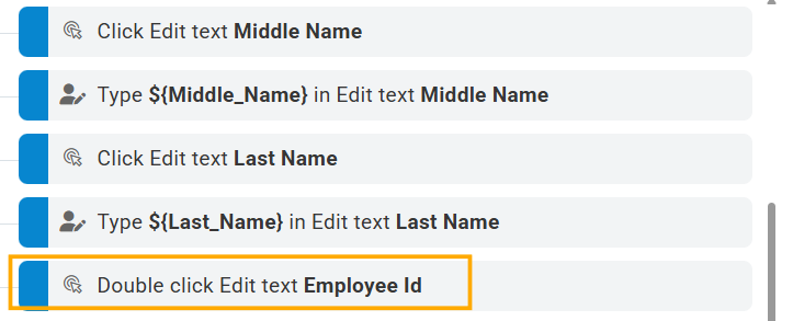 User interface changes in an application can alter the behavior of recorded test steps. For example, after a UI update, the Employee ID field might require a double-click instead of a single click to enable editing. As a result, a previously recorded Click action might no longer work as expected.