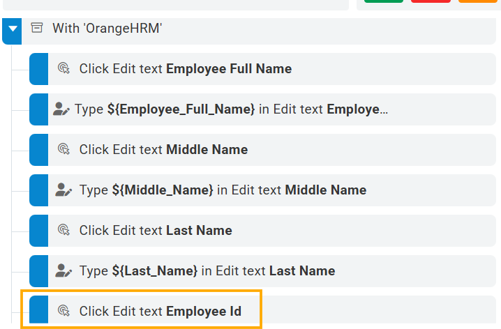 In the recorded test steps list, locate the Click Edit text Employee