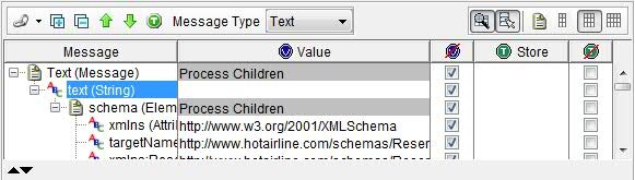 The structure of a message is defined when you are using the publish/subscribe actions. In each action type, different views of the message can be selected. On selecting a view, information relating to the storage and validation of the message is displayed.