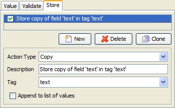 The action is configured to store all matching rows, which means it writes tag lists instead of single values. Additionally, all of the columns from the test data set are mapped to tags of the same name.