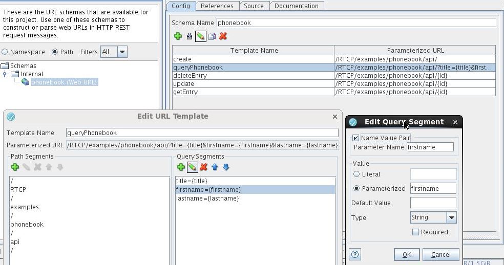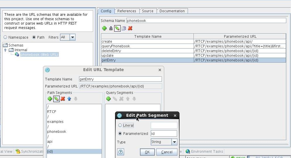 /RTCP/examples/phonebook/api/. The Resource Path field never contains path parameters because these are identified in the selected Web URL schema. - For the subpaths field, select values from the second column of the table.