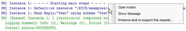When you run a test against a stub, an entry is displayed on the stub console when a match is found. You can right click the entry for a list of options.
