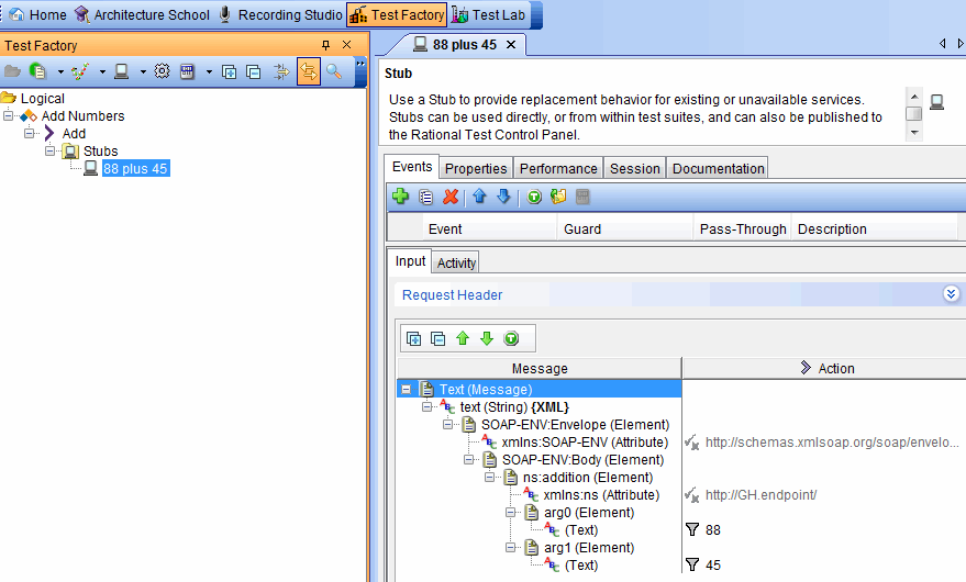 The stub is opened in Test Factory.