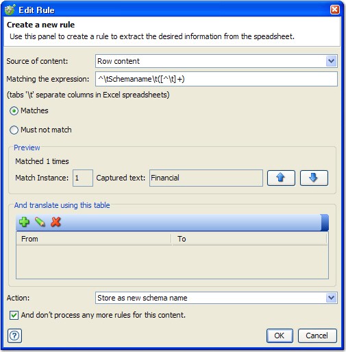 | Store as new schema name | Stores the matched text as the name of the new record layout. This action is required. The layout cannot be created without a name. |