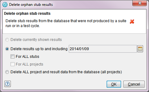 - For ALL projects, you can delete all stub results in all projects within the database before and including the selected date.