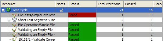 | Failed | The number of iterations of the selected resource that failed. For a scenario, the total number of failed child tests is displayed. |