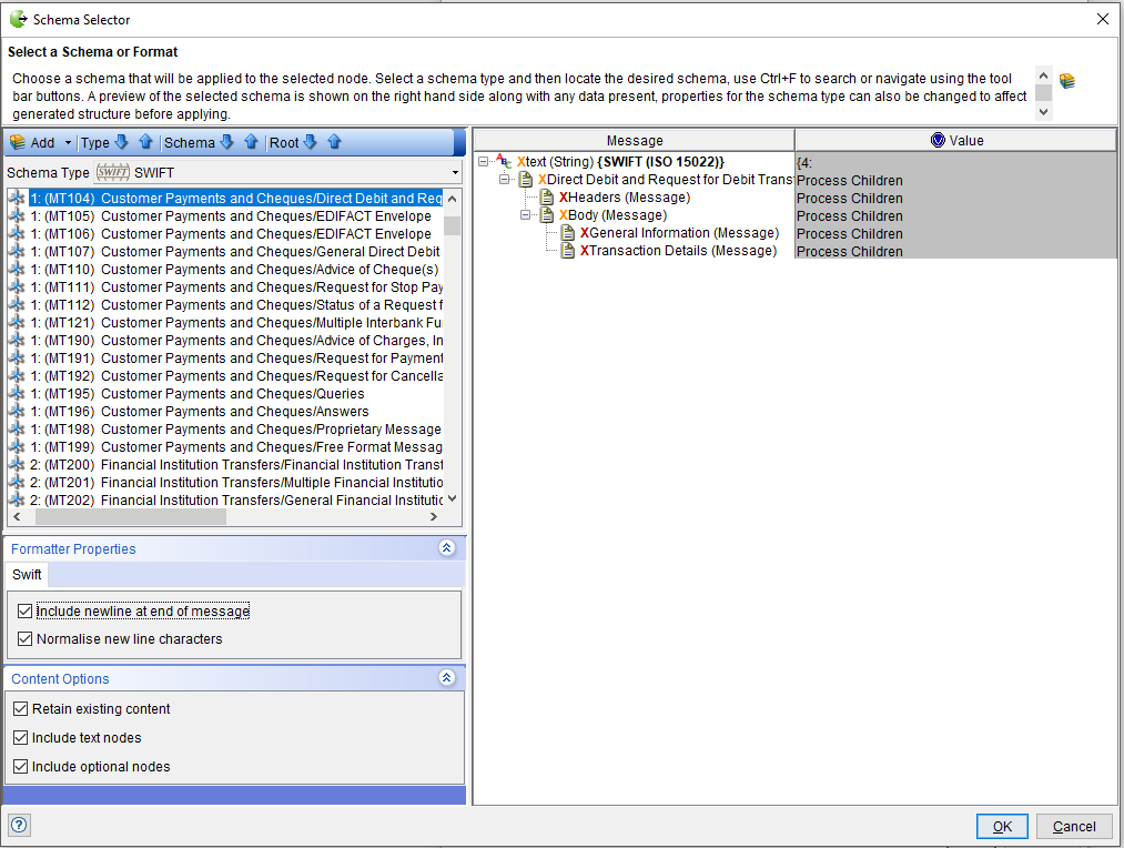 - Select the SWIFT schema that you want to apply.