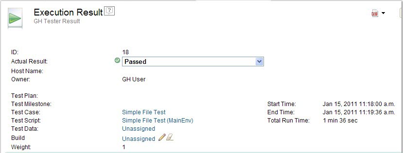 Test Cases in Rational® Quality Manager can be executed in many ways (for example, direct or fast path execution, as part of a test suite). The following illustrates the fast path execution method. Refer to your Rational® Quality Manager documentation for more information about other ways to use the test resources that are exported from Test Integrations and APIs.