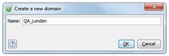 Note:If you are using the Test Virtualization Control Panel instance specified in the URL field on the Server Settings tab, the new domain is not immediately displayed on the Domains and environments tab of the Administration page. You must first log out of Test Virtualization Control Panel and log in again.To add details about the new domain, use Test Virtualization Control Panel (see Creating domains with DevOps Test Virtualization Control Panel method).