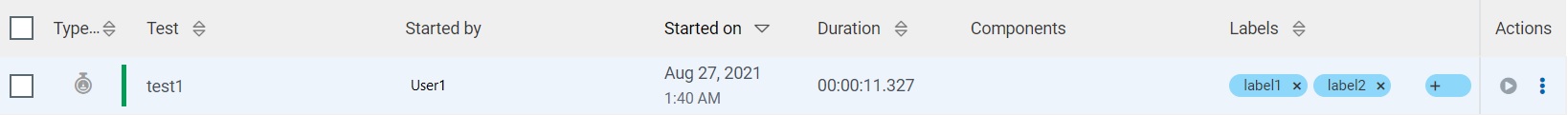 You can also use the -labels parameter along with the -publish parameter to add labels to a test result when you want to publish test results to Test Hub. You can add multiple labels to a test result separated by a comma. When you run test assets, then the labels that you added are displayed on the Performance Report in Test Performance. The Results page of Test Hub displays the label that