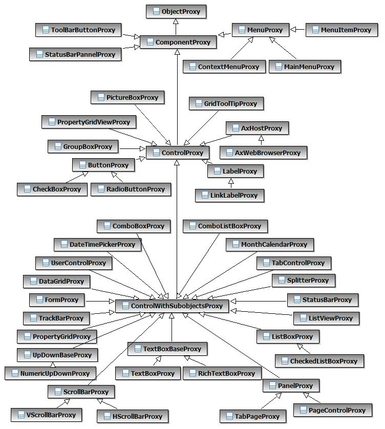 The following figure is a class diagram of the proxy hierarchy for .Net controls: