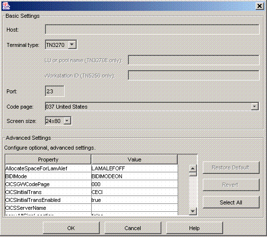 | OK | Completes the connection configuration. Returns to Extension for Terminal-based Applications window and connects to host. |