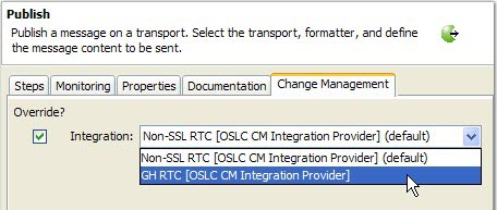 If multiple change management integrations are configured in the current project, you can override an inherited integration or the default integration under the Change Management tab. Here, you can specify a different integration to be used. Examples of inherited integration are integrations from an operation or service component higher up the project resource tree.