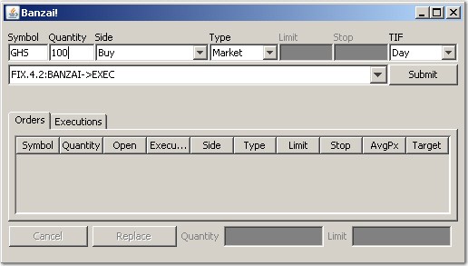In Banzai, a trade is submitted by using the FIX 4.2 Session.