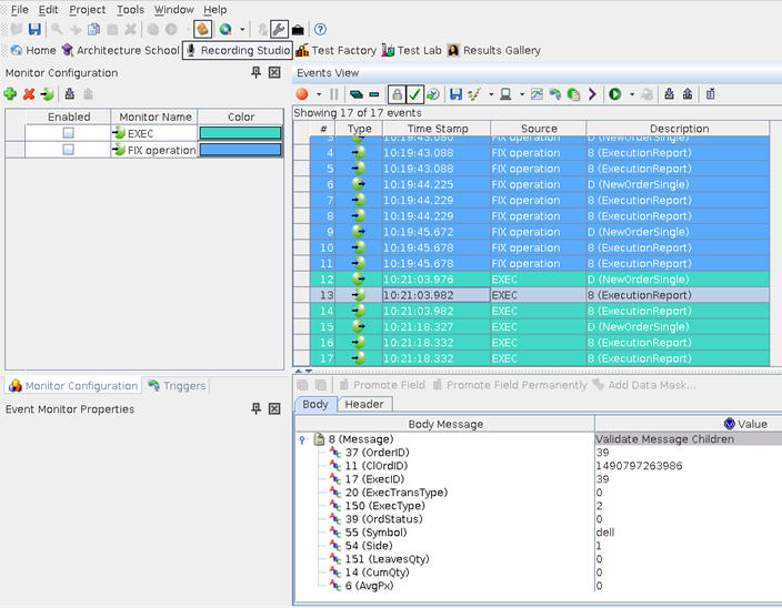 Test Integrations and APIs can record the conversation between a FIX client (initiator) and server (acceptor). Recording is illustrated by the following example, which uses the QuickFIX/J Banzai (client) and Executor (server) demo applications.