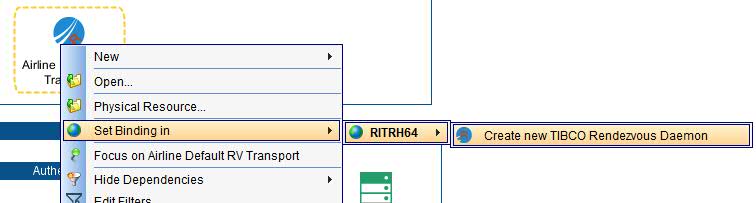 2. Select the Set Binding in > [environment] > Create new TIBCO Rendezvous Daemon option.