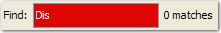 If no items match the current search string, the background of the Find field is displayed in red and "0 matches" is displayed.