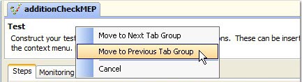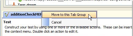 When multiple requirements or test assets are opened for editing (see Test Factory), the opened items can be organized into groups by dragging their named tabs into an existing editing panel.
