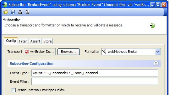• The event type name and optional event filter string. For more information, see webMethods Broker Client Java API Programmer's Guide.