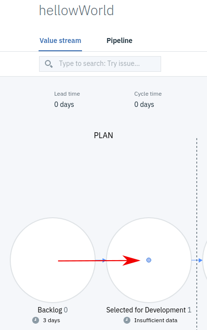 Selected for Developmentstage in the JSON file.The following DQL query limits theSelected for Developmentstage to Jira issues with the workflow status of Selected for Development:"phases": [ { "name": "PLAN", "description": "", "stages": [ { "name": "Backlog", "query": "issue.status=\"Backlog\"", "description": "", "wipLimit": null, "gates": null }, { "name": "Selected for Development", "query": "issue.status=\"Selected for Development\"", "description": "", "wipLimit": null, "gates": null } ] }, - Save the helloWorld-vsm.json file.