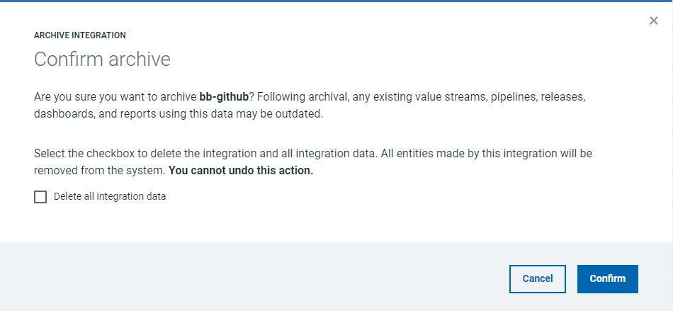 4. Select Delete all integration data checkbox to delete all integration data and click Confirm.