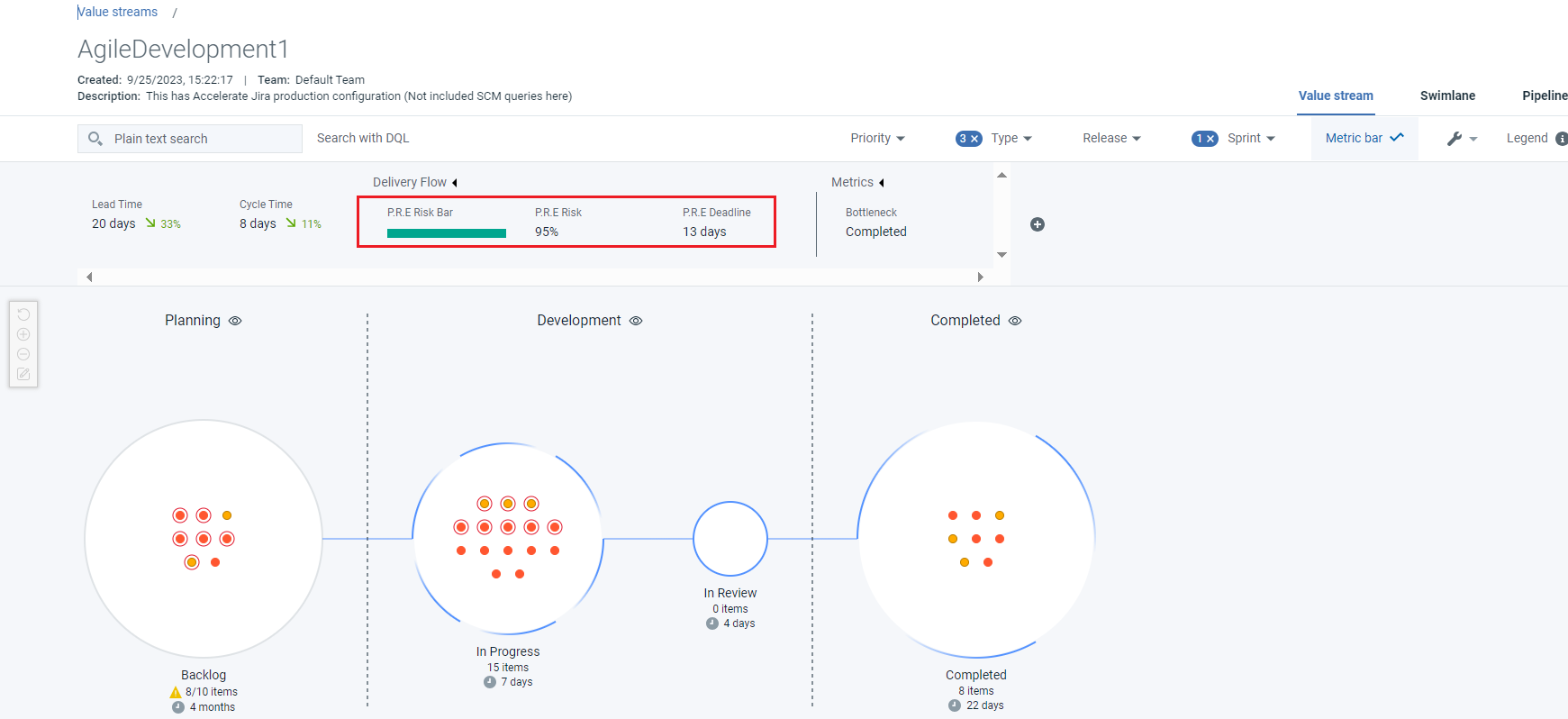 Milestone risk is a metric which measures the probability of a team that may not complete all of the current in-scope work in an active development iteration (sprint). The milestone risk estimator plug-in uses a stochastic machine learning (ML) algorithm to estimate and predict the potential percentage risk of non-completion of all work during an on-going sprint. To calculate this metric, the model uses all historical work items available in the selected value stream to train the model and extracts the required information to make the prediction.