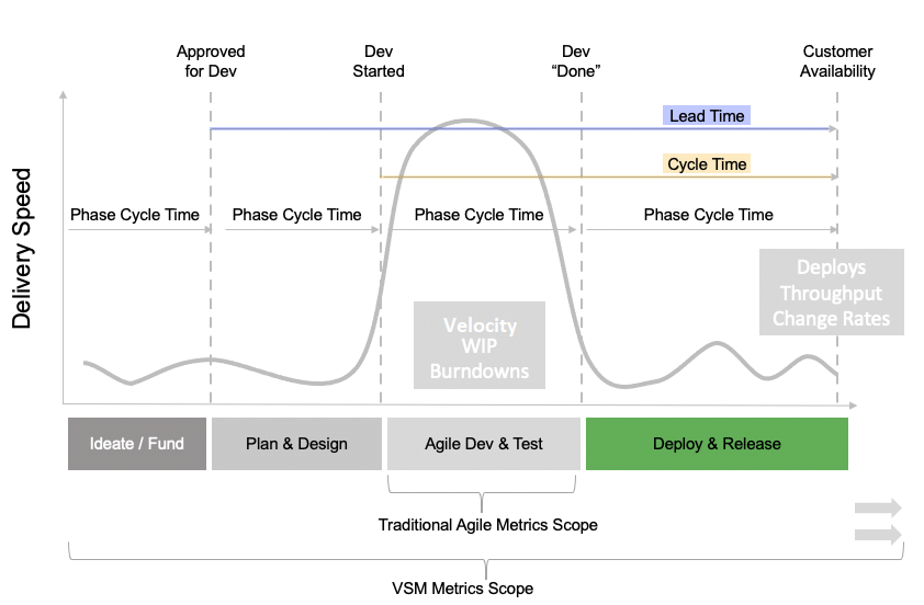 - Lead- and cycle-time are critical metrics to VSM in terms of operational effectiveness of your teams and quantifying workflow into and through the system.