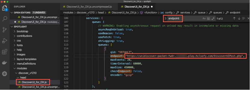 Additional information and modifications to the HCL Digital Experience Discover.js file may be required depending on the environment setup for the HCL DX site and the Unica Discover server communications.