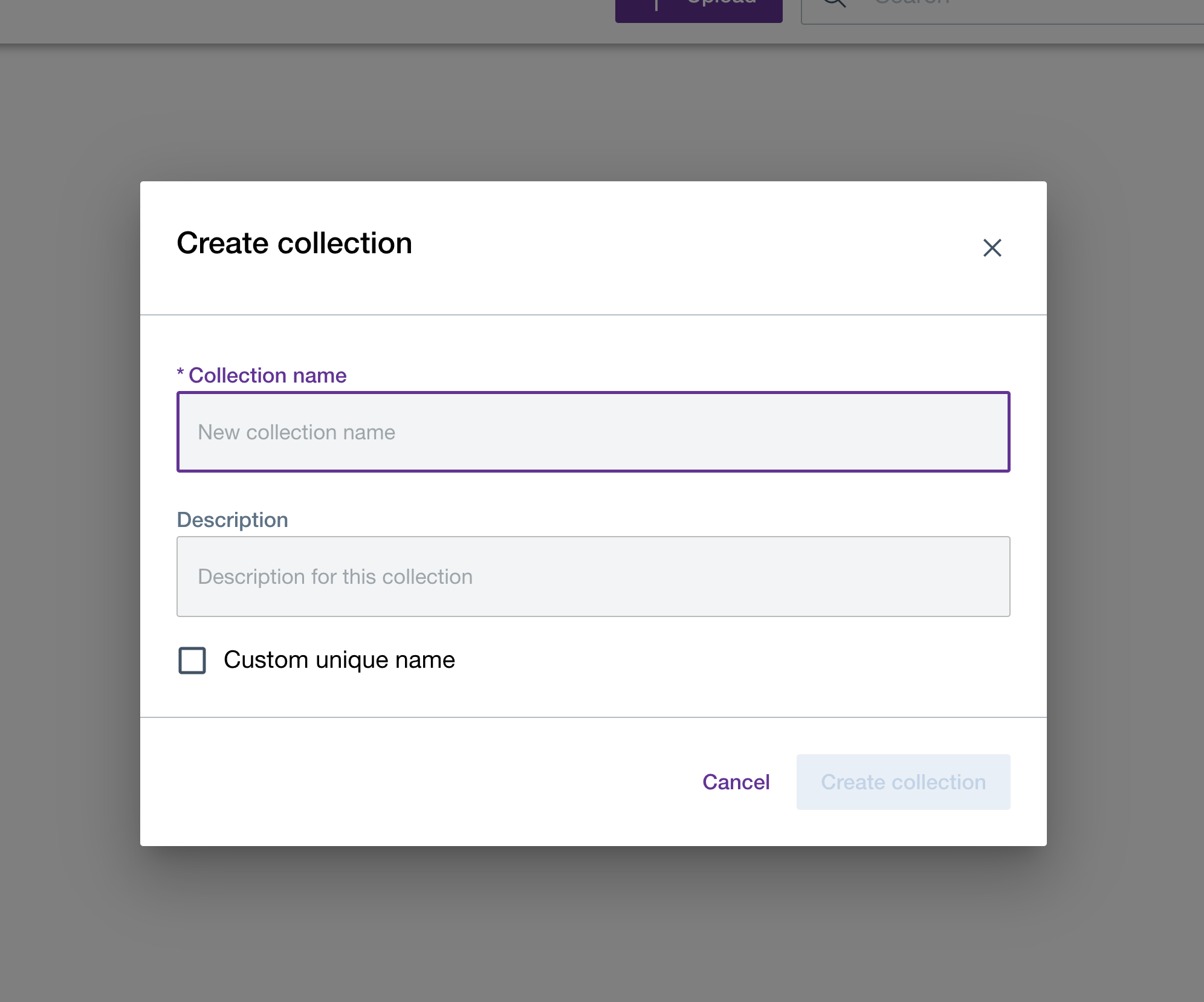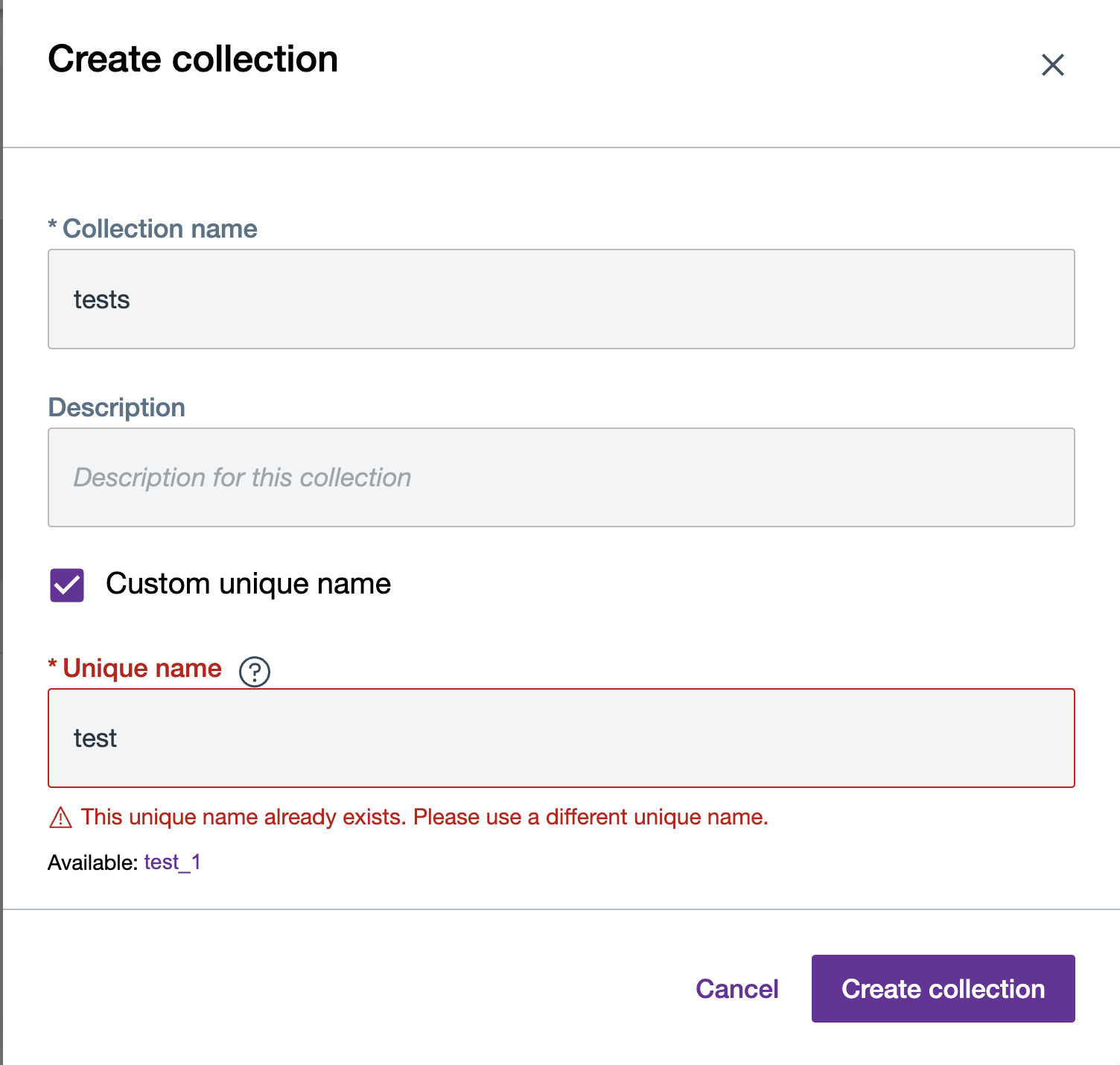 - While creating a collection, the user has a provision to enter a custom collection unique-name.