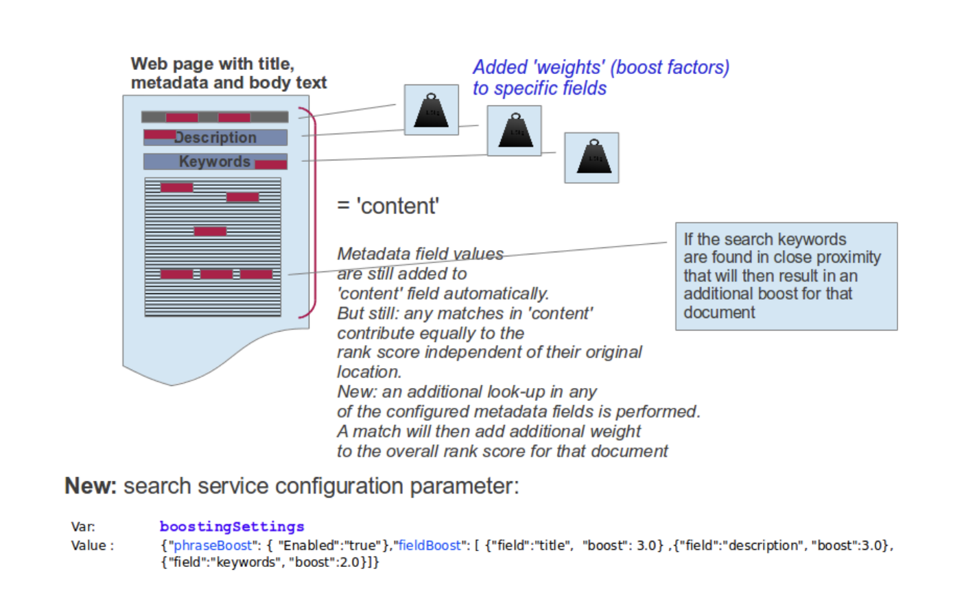 Value: {"phraseBoost": {"Enabled":"true"}, "fieldBoost": [{"field":"title", "boost": 3.0}, {"field":"description", "boost":3.0}, {"field":"keywords", "boost":2.0}]}