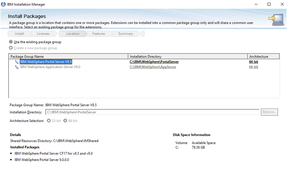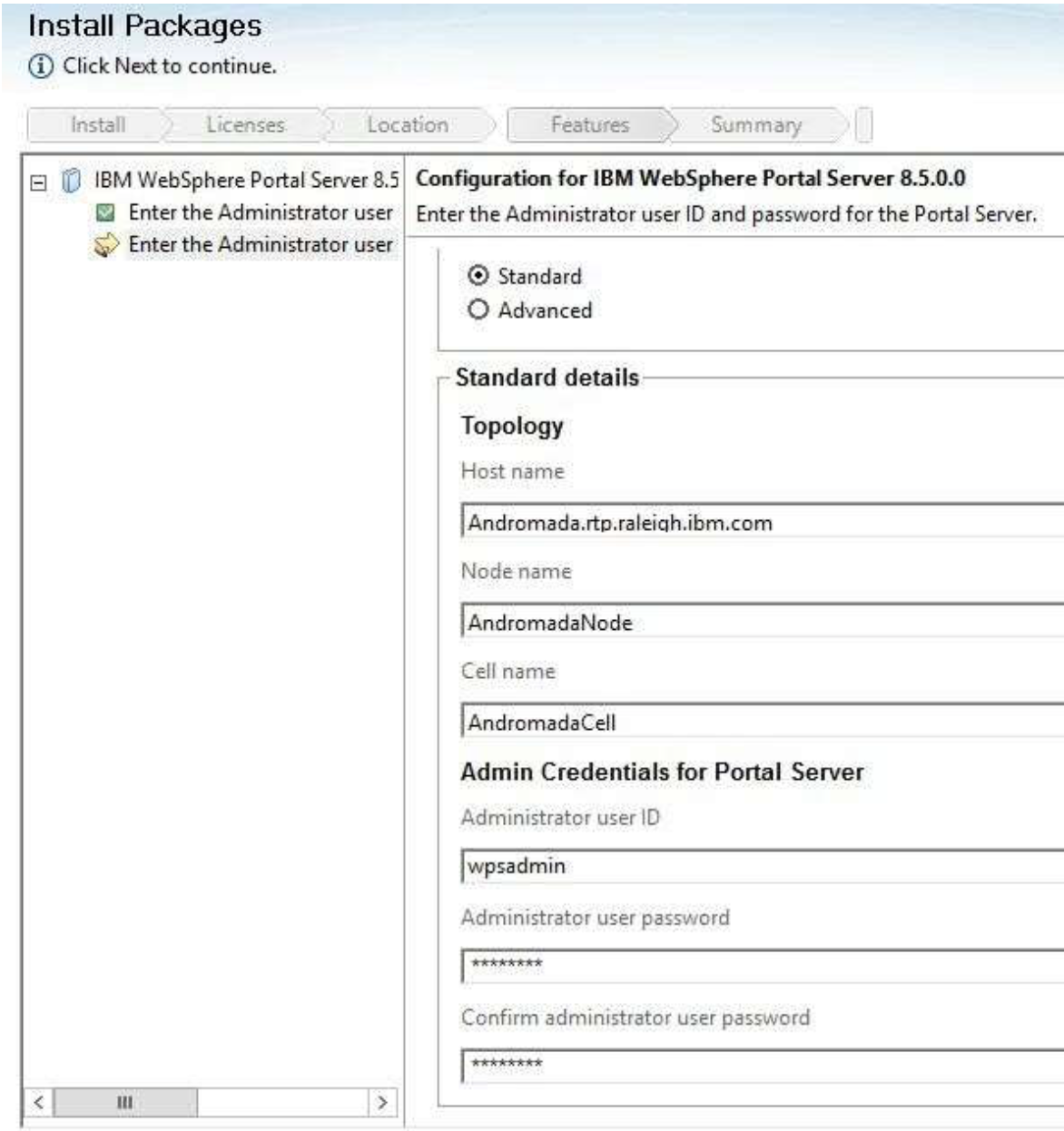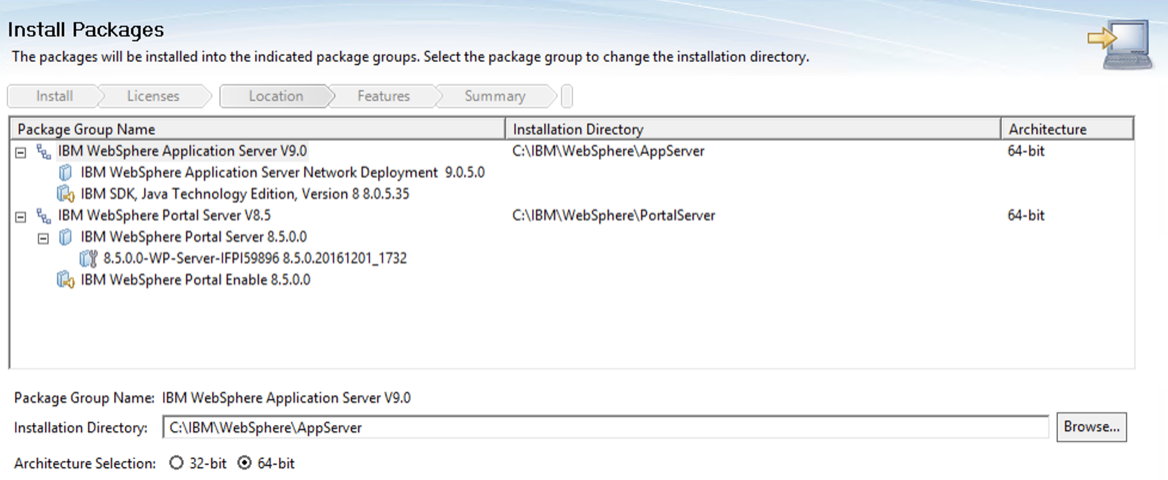 Set the path you wish the WAS and Portal package to be installed.