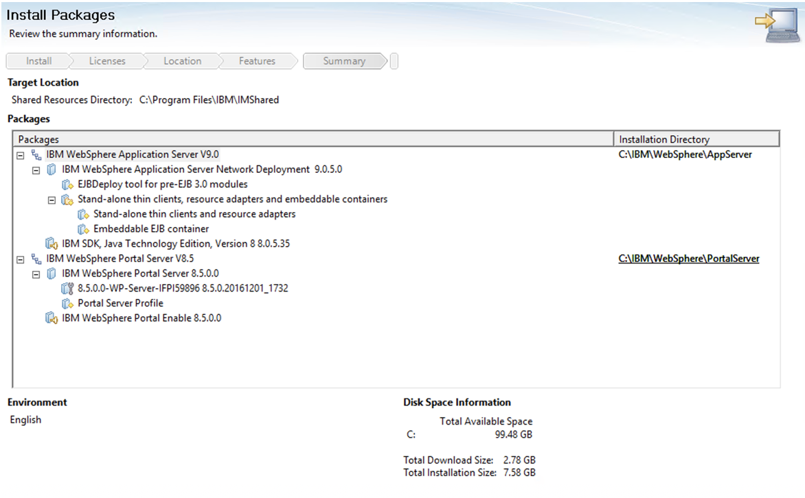 Within IIM, select Install icon, then highlight all the items listed.
