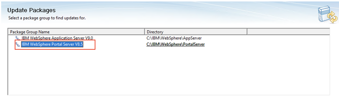 Within IIM, select Update icon, then select the Portal package.