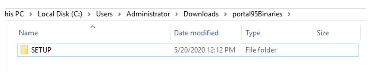 Once you have the parts downloaded, create a parent folder wherein the files are to be extracted. You can name it as portal95binaries as shown in the example below: