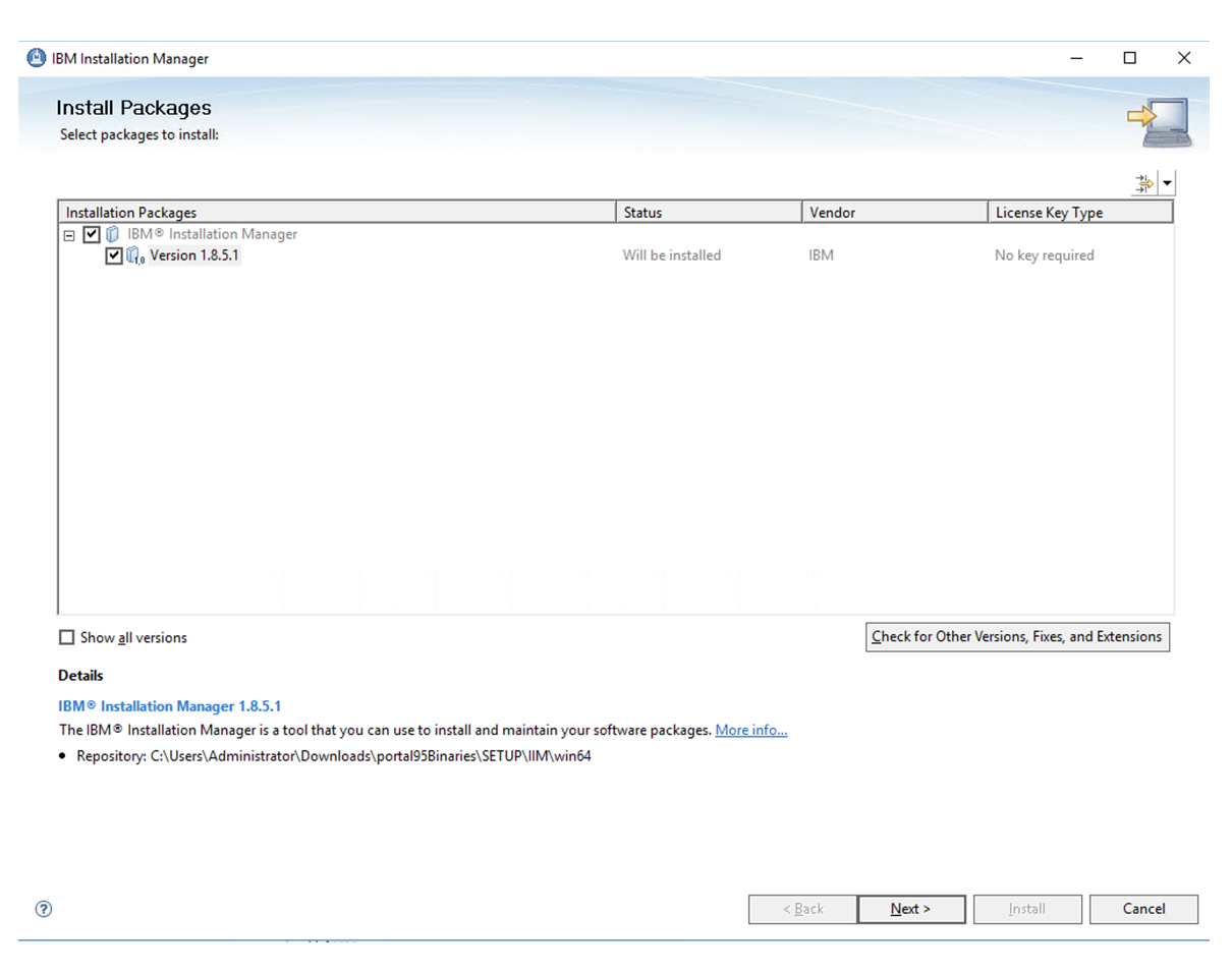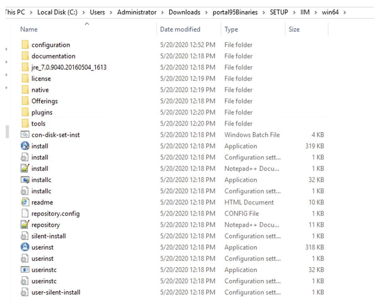 To install IIM, navigate to C:\Users\Administrator\Downloads\portal95Binaries\SETUP\IIM folder.