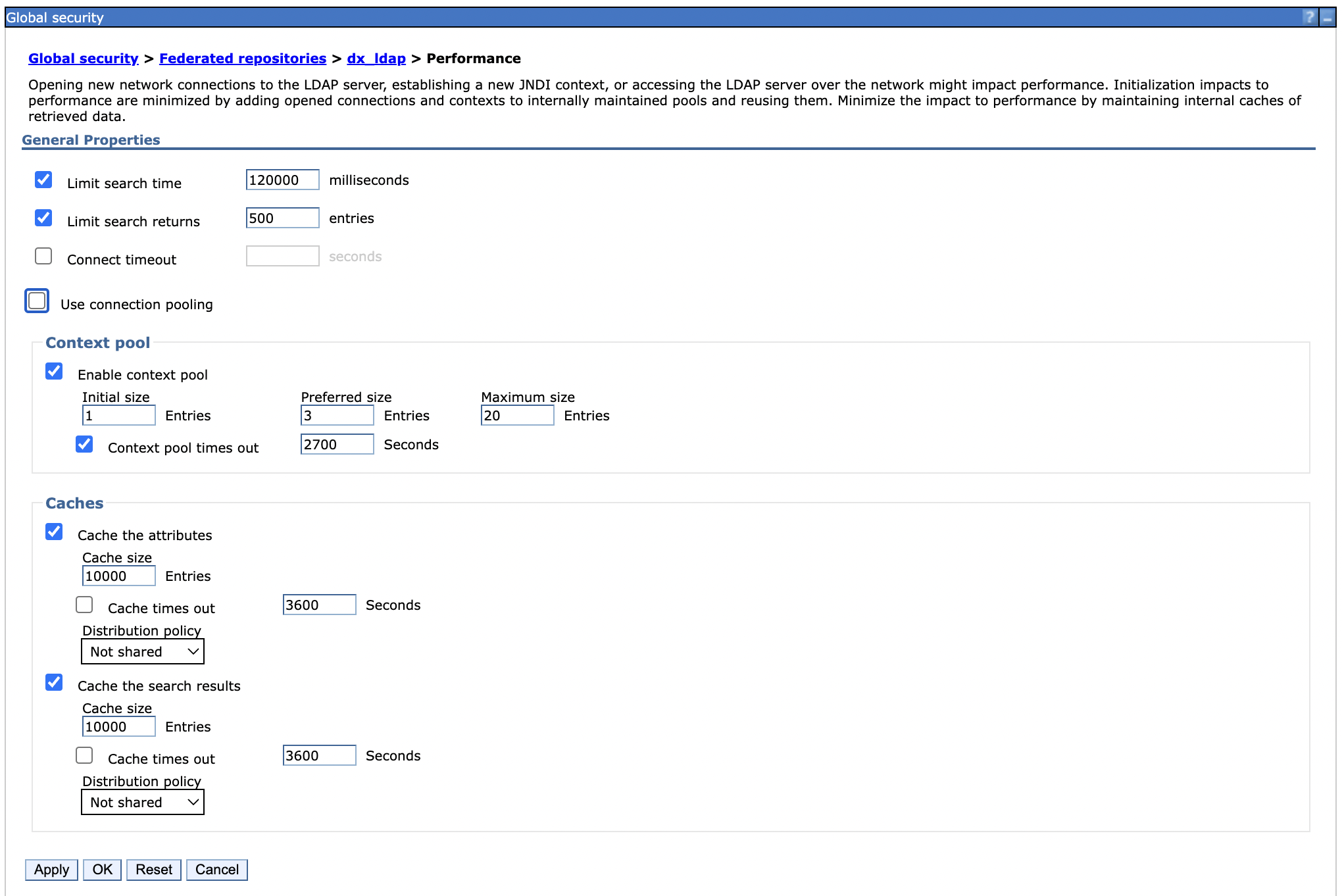 Set LDAP user cache attributes and search to 10000.