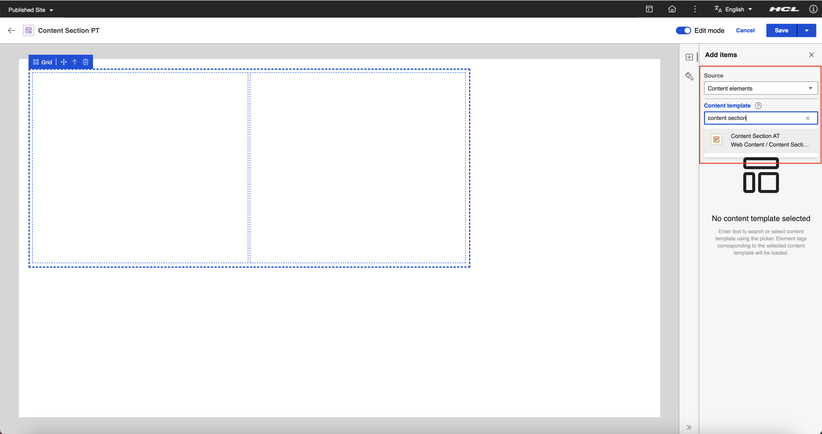 In the Content template field, search and select the content template prepared in Prerequisites.