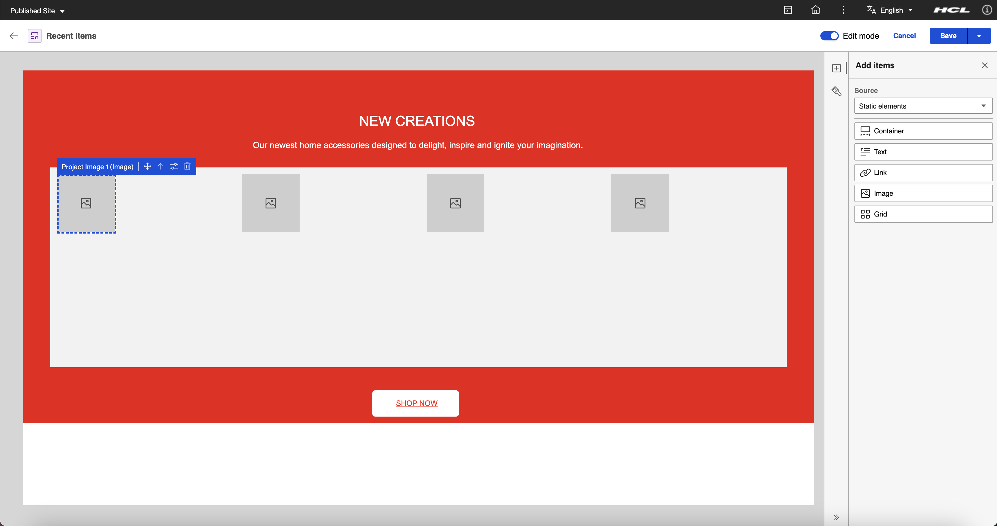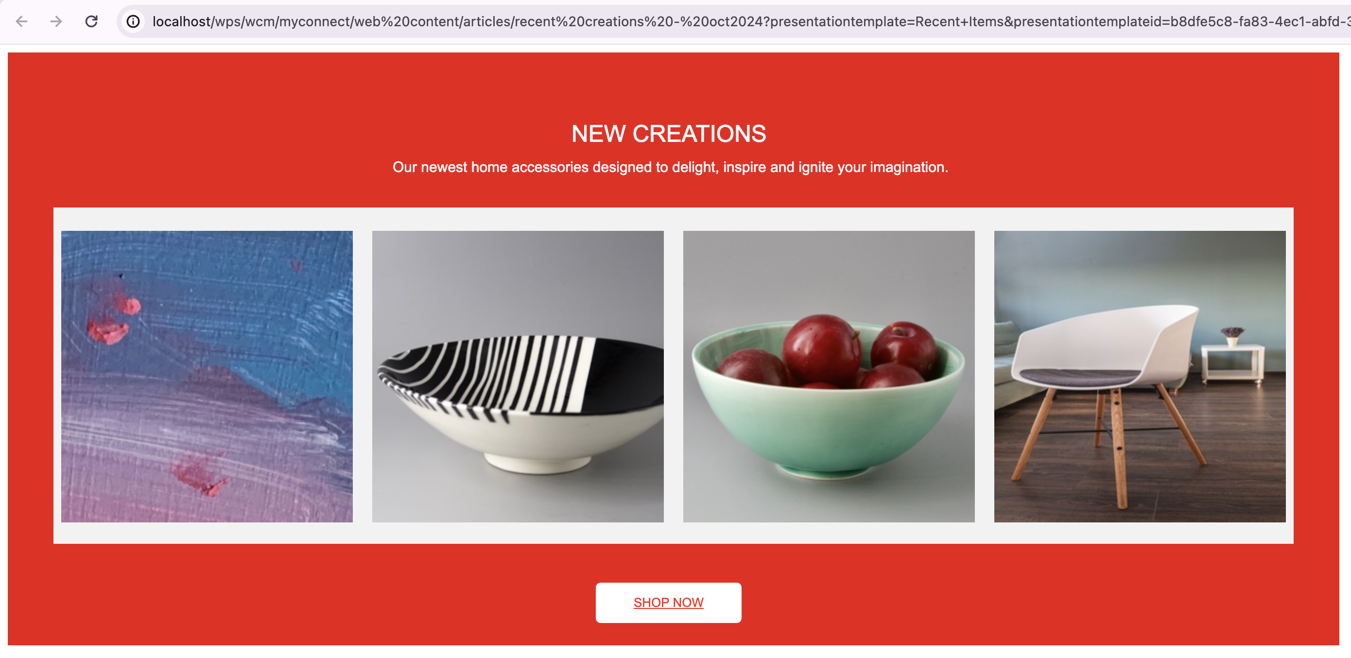 Create two or more content items using the created content template and add different content to the image, text, and rich text elements for each content item. For more information on how to create a content item, see Author Content Items.