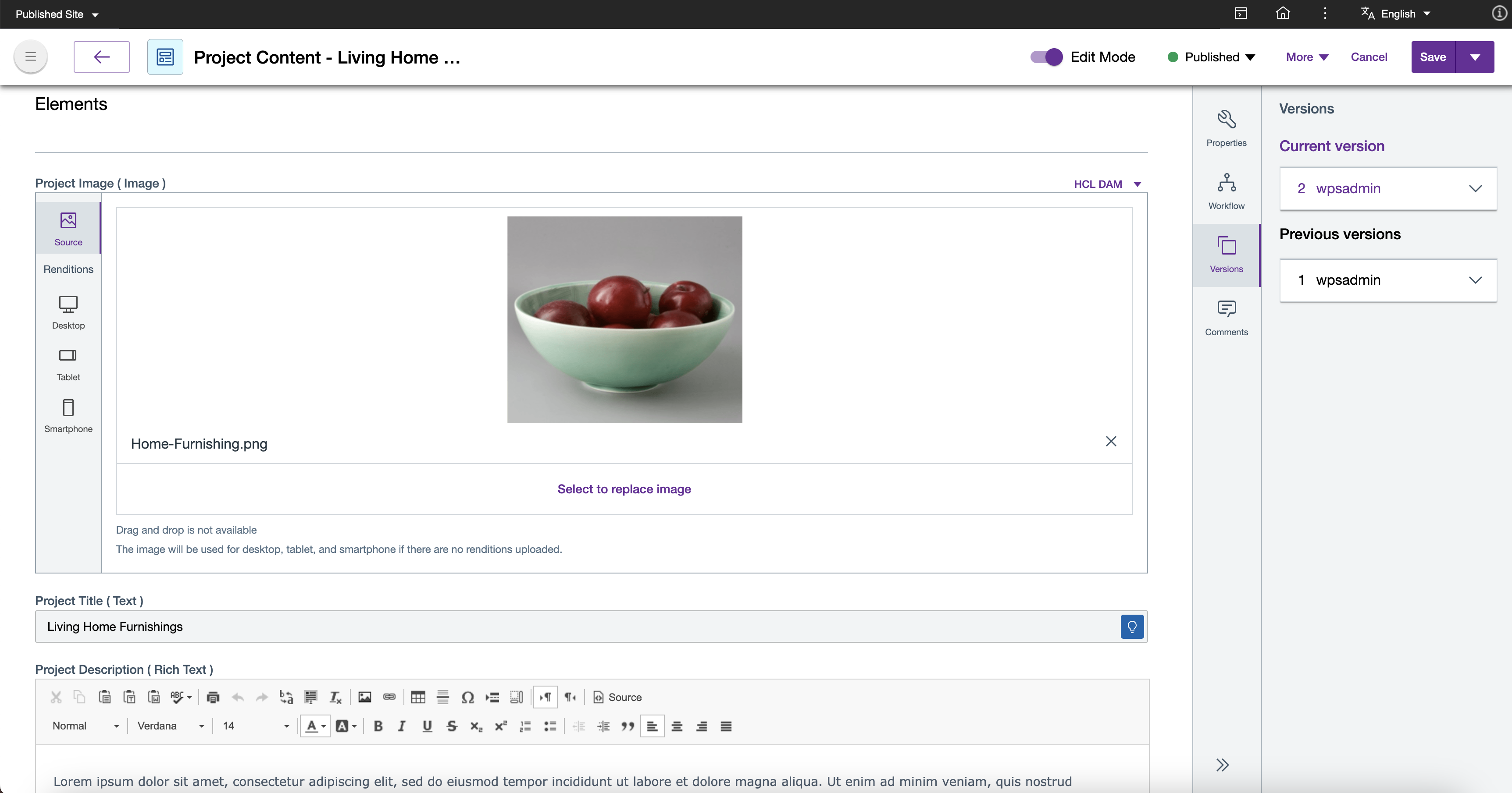 Create two or more content items using the created content template and add different content to the image, text, and rich text elements for each content item. For more information on how to create a content item, see Author Content Items.
