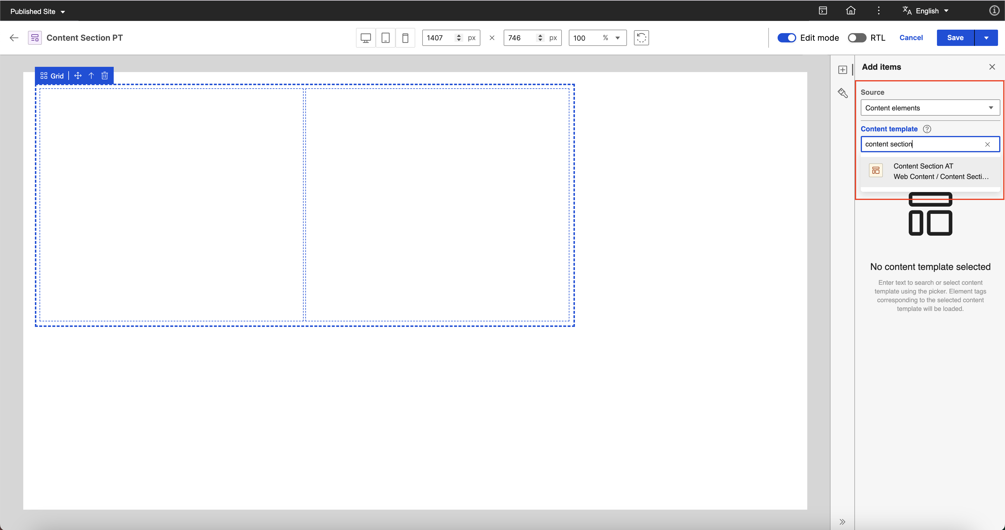 In the Content template field, search and select the content template prepared in Prerequisites.