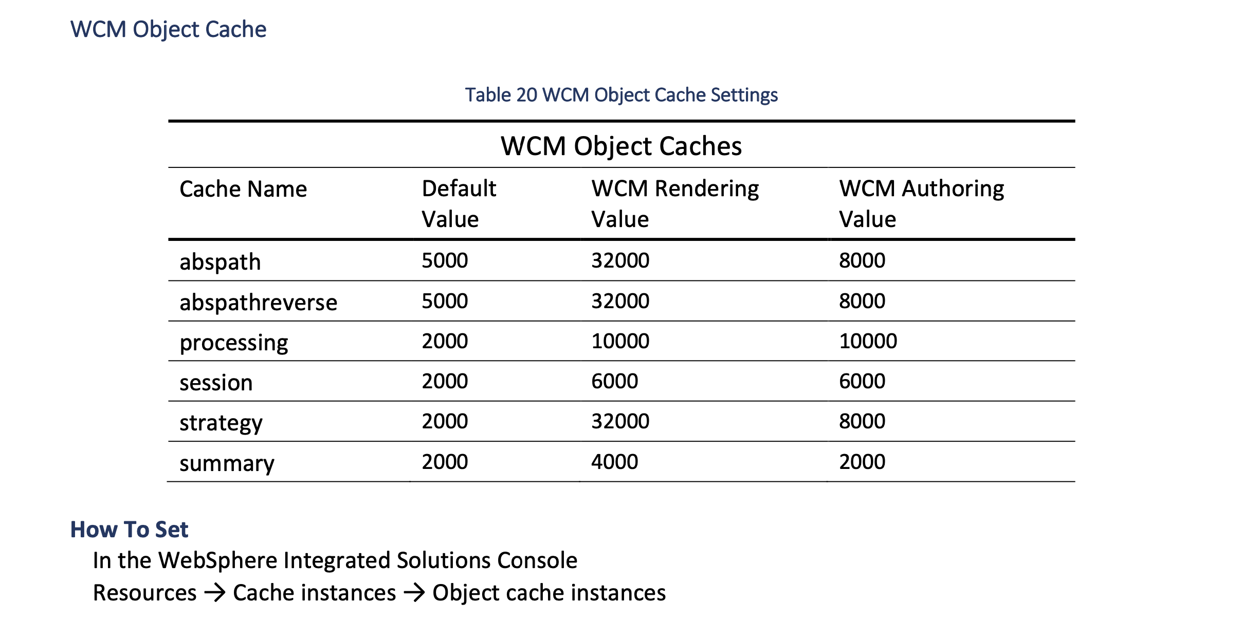 Updated the WCM object cache for rendering. Refer to the Performance Tuning Guide for Traditional Deployments for more information.