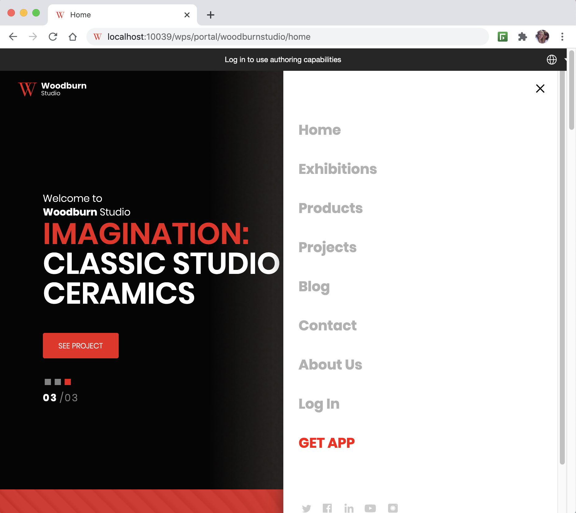 3. The theme custom navigation JSP was updated to include the button in the navigation (the mainNav.jsp in Woodburn Studio).