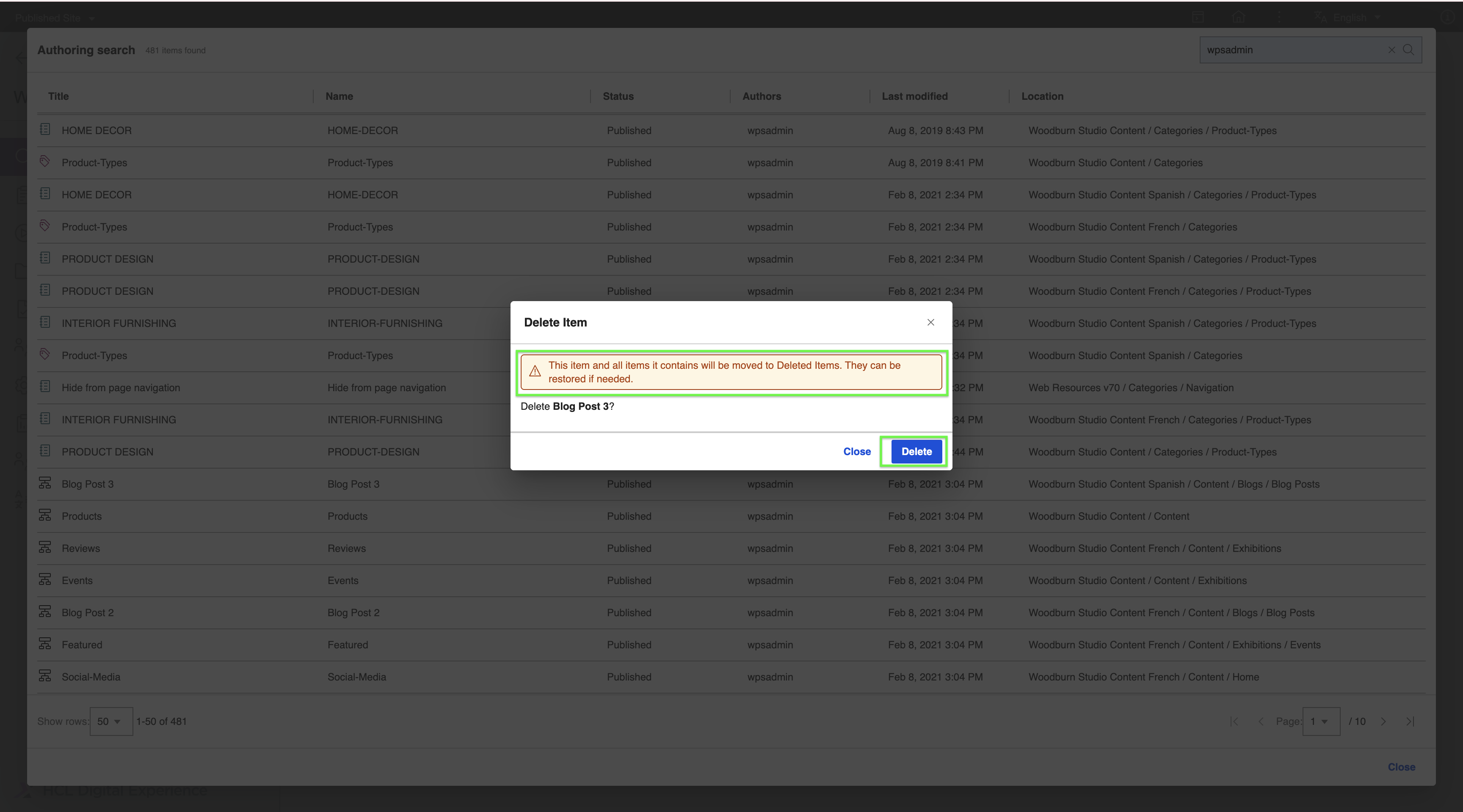 Starting from CF229, you can now delete items from the search results. To delete an item, refer to the following steps:
