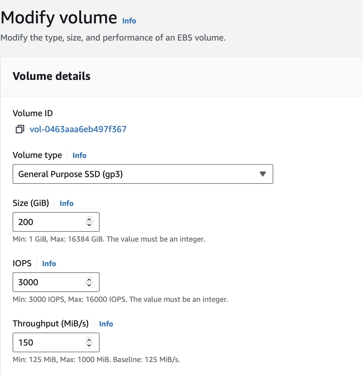 • Volume details