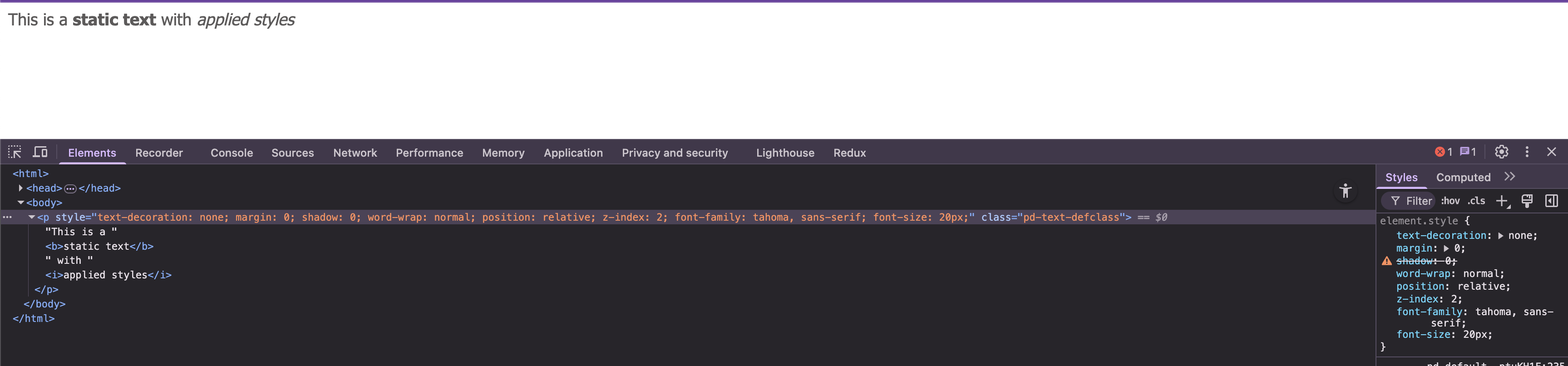 In Presentation Designer, styling options are applied directly to the selected elements through inline styles.